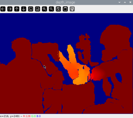 ### 1、程序功能说明 程序启动后,会把订阅接收到的黑白深度图像转换为伪彩色的图像,根据深度远近的信息,图像呈现不同程度的颜色。 ### 2、程序代码参考路径 `~/yahboomcar_ros2_ws/yahboomcar_ws/src/yahboomcar_depth/yahboomcar_depth/Basic/depth_to_color.py` * depth_to_color.py文件 * 主要是通过订阅深度图像信息,将深度数据转化成伪彩色图。 ### 3、程序启动 终端输入 ``` ros2 launch ascamera hp60c.launch.py ros2 run yahboomcar_depth depth_to_color ``` 成功启动如下图所示,会生成一个窗口,显示伪彩色的图像,  由实际的距离可知,深度信息的差异就很直观由颜色来体现。 ### 4、核心代码 depth_to_color.py 这个程序主要有以下几个功能: 订阅原始的深度图像话题将单通道(灰度)深度图像转换为伪彩色图像(Jet颜色映射)在窗口中实时显示转换后的彩色深度图像部分核心代码如下 ``` def topic(self, msg): # 将ROS图像消息转换为OpenCV格式 Convert ROS image messages to OpenCV format depth_image_orin = self.depth_bridge.imgmsg_to_cv2(msg, encoding[1]) # 深度图像处理: #Deep Image Processing: # 1. 调整深度值范围:使用convertScaleAbs缩放深度值 # 2. 应用伪彩色映射:使用COLORMAP_JET(蓝->绿->红) # 1. Adjust the depth range: Use convertScaleAbs to scale the depth values. # 2. Apply a pseudo-color map: Use COLORMAP_JET (blue->green->red) depth_to_color_image = cv.applyColorMap( cv.convertScaleAbs(depth_image_orin, alpha=0.45), cv.COLORMAP_JET ) # 显示处理后的图像 Display the processed image cv.imshow(self.window_name, depth_to_color_image) # 保持窗口更新(1ms延迟) Keep the window updated (1ms delay) cv.waitKey(1) ```